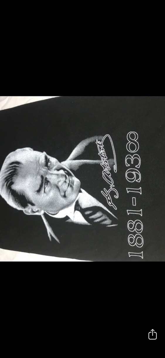 Mustafa Kemal Atatürk'ün portresi, imzası ve 1881-1938 yıllarını baskılı tişört