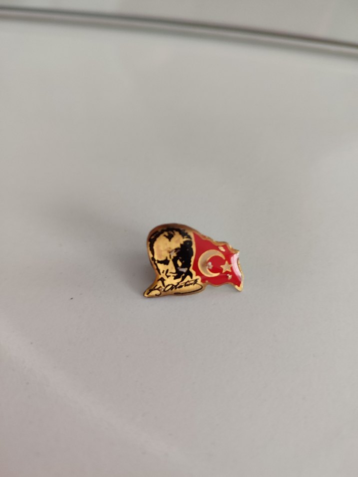 Gold altın renkli Atatürk, imzası ve bayraklı rozeti. yeni ürün