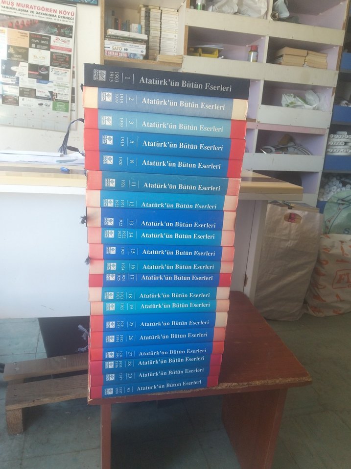 Atatürk'ün tüm eserlerini içeren,Ciltli Şömizli. mavi ve kırmızı kapaklı kitap seti. Toplamda 30 cilt'ten oluşuyor burada 10 cilt eksik.