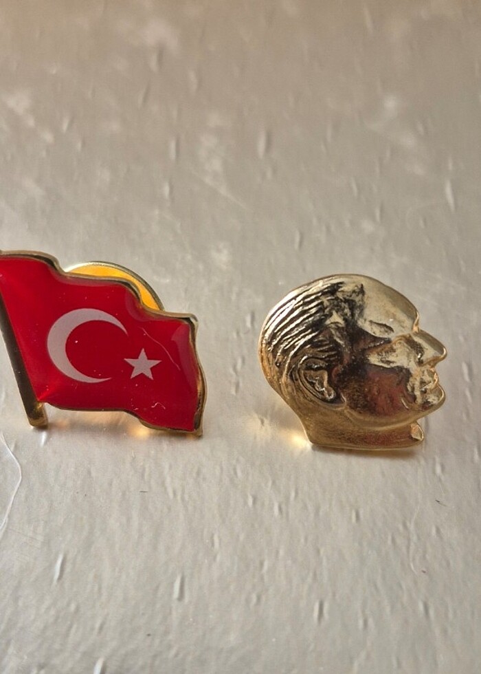 1 adet 1,5cm sarı metal Atatürk Rozeti, 1 adet 1cmx2cm metal üzeri damla Türk Bayrağı Rozeti. Fiyat 2 ürün içindir. fotoğraflarda gördüğünüz gibidir.