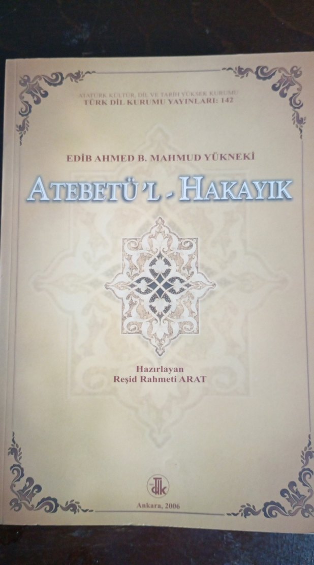 Edib Ahmed B. Mahmud Yükneki'nin Atebetü'l-Hakayık kitabı, Reşid Rahmeti Arat tarafından hazırlanmış, Türk Dil Kurumu yayınevi tarafından basılmıştır.
