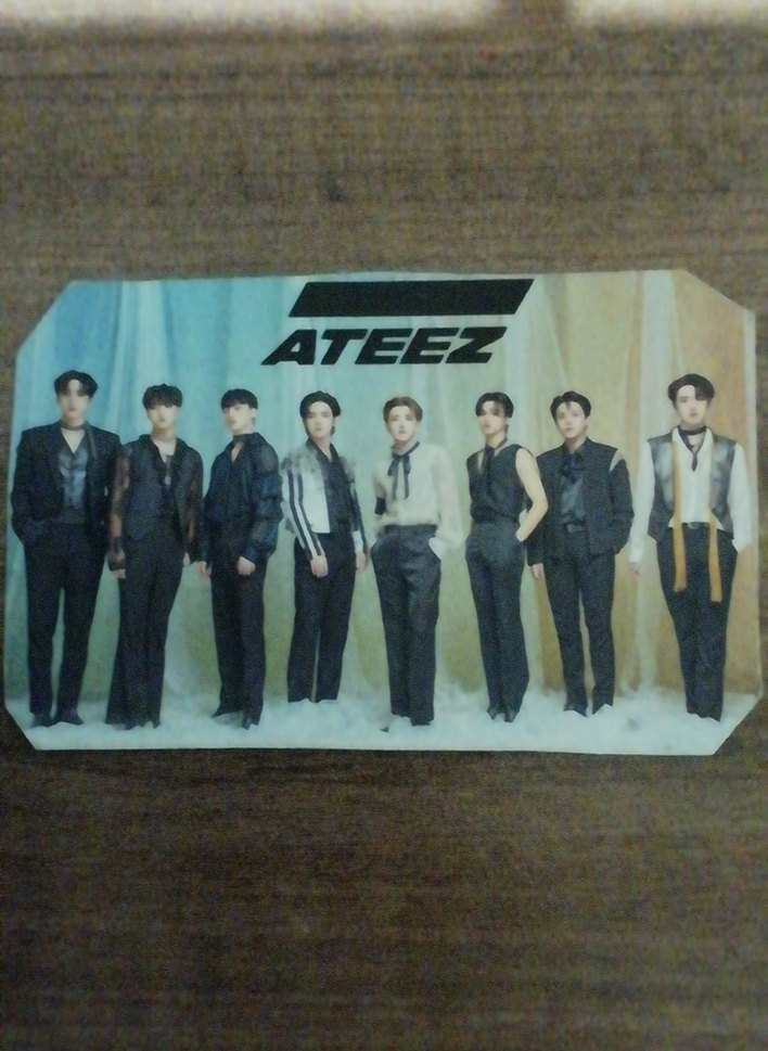 ATEEZ'in karanlık ve şık kıyafetleriyle avant-garde tarzda, camel tonlarında erkek rozeti. Trend belirleyiciler için uygun.