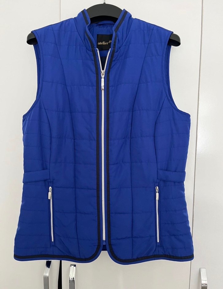 Fermuarlı, yüksek yakalı mavi kadın yelek. Normal boyda, dar kesim ve fermuarlı ceplere sahip. Sokak stili ve günlük kullanıma uygun, yumuşak ve sıcak kumaştan yapılmıştır. Almanya’ dan almıştık. 1 kere giyildi. Koltuk altı eni: 53 boy:66 cm