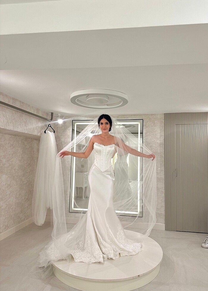 Özel dikim gelinlik. 1.69 boy (topuklu 7 cm kullandım etek boyu 1.78 e kadar uyumlu) 52-53 kg arası xs uyumludur. Nikah ve fotoğraf çekimi dışında kullanılmadı. Kadıköy atelier mila da dikildi