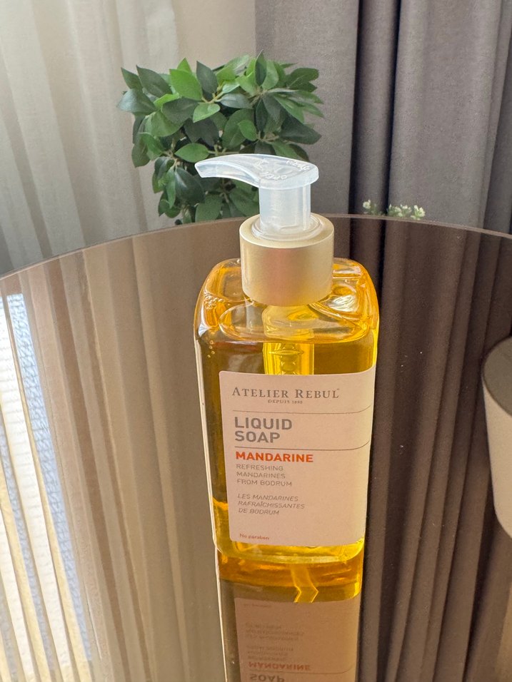 Atelier Rebul mandalina kokulu sıvı sabun, ferahlatıcı temizlik sağlar. Pompalı şişe ile duşta kolay kullanım sunar.