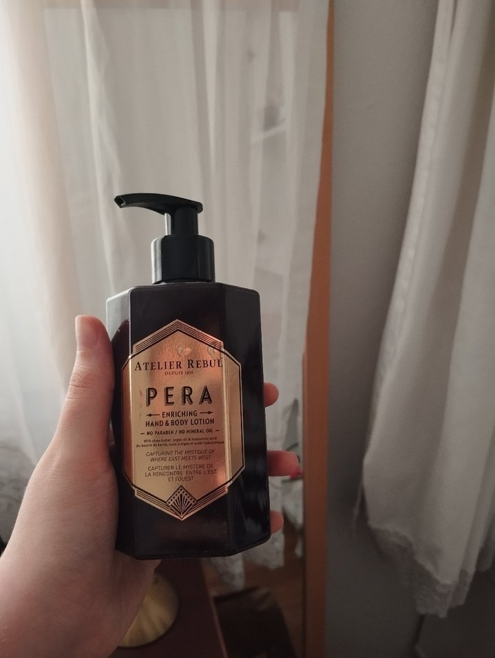 Atelier Rebul Pera el ve vücut losyonu, cildi nemlendirir ve besler, hafif bir koku bırakır.