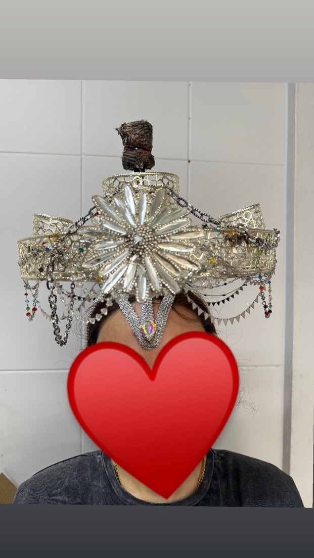 Gümüş renkli payet ve zincir detaylı avant-garde tarzda saç aksesuarı.Ateş Dansçı başlığı aksesuar ✨
