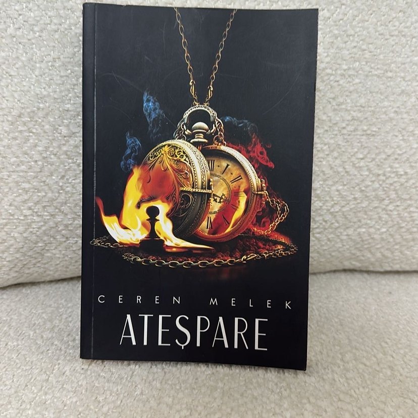 Ceren Melek'in 'Ateşpare' adlı romanı, kapağında yanan cep saati ve zaman teması yer alıyor.