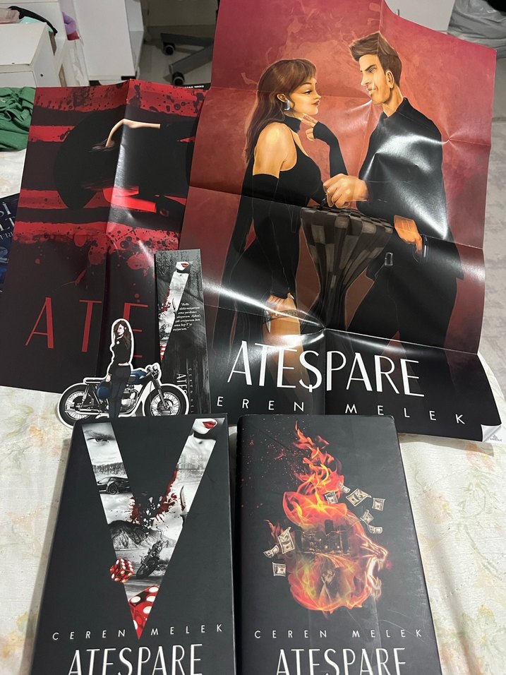 Ceren Melek'in 'Ateşpare' adlı roman serisi, çift ve tematik görsellerle dikkat çekiyor. Set, birden fazla kitap ve poster içeriyor. 0 durumda hiç kusuru yok .