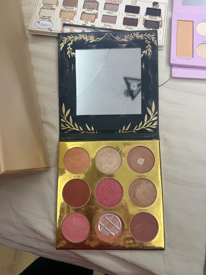 Altın ve sıcak tonlarda dokuz renkli, iç aynalı göz farı paleti. Mat ve ışıltılı dokular içerir. ✨