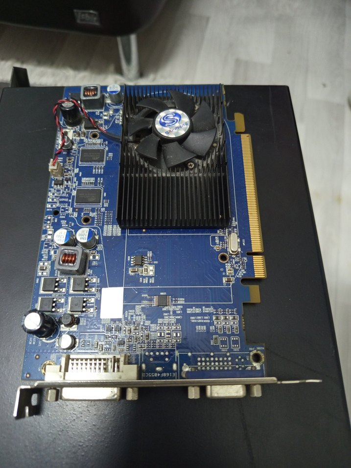 Soğutucu fan ve çoklu video çıkış portlarına sahip koyu mavi renkli bilgisayar ekran kartı. Görsel performansı artırmak için uygundur.