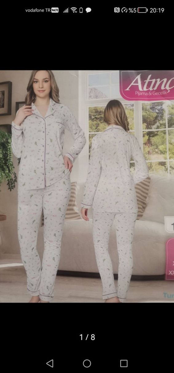 Atinç markalı kadın pijama takımı, uzun kollu , gri çiçek desenli beyaz renkte. Rahat ve modern tasarımıyla konfor sağlar.