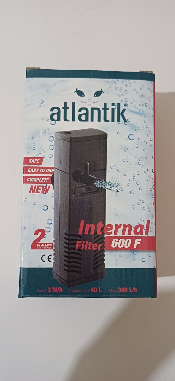 Atlantik İç Filtre 600F, 40L kapasiteye uygun, 300L/s akış hızına sahip, kullanımı kolay ve güvenli siyah akvaryum hava pompası ve filtresidir. Selamlar Ürün birebir Sıfır kutusu hiç açılmamış üründür. Ürün hava pompası ve filtresi tümleşik olup, akvaryum içerisinde çalışan sessiz ve kuvvetli filtrasyon sağlayan üründür. Ürün küçük-orta-büyük boy 40 litre su kapasitesine kadar olan tüm akvaryumlar için idealdir. Ürünü gönül rahatlığı ile tercih edebilir satın alabilirsiniz. Ürün ithal yurt dışı ürünüdür. Sadece ithalat firma ve markası yerli firmadır. Diğer ilanlarımada bakmanızı tavsiye ederim.