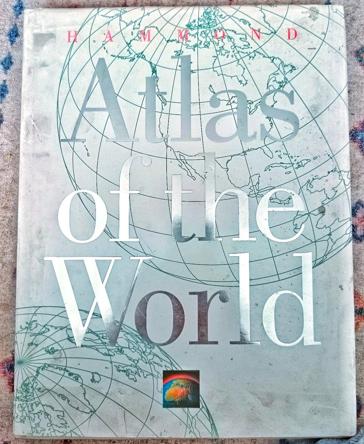 Atlas of the World, dünya haritaları ve sanatsal tasvirler içeren bir kitap.
