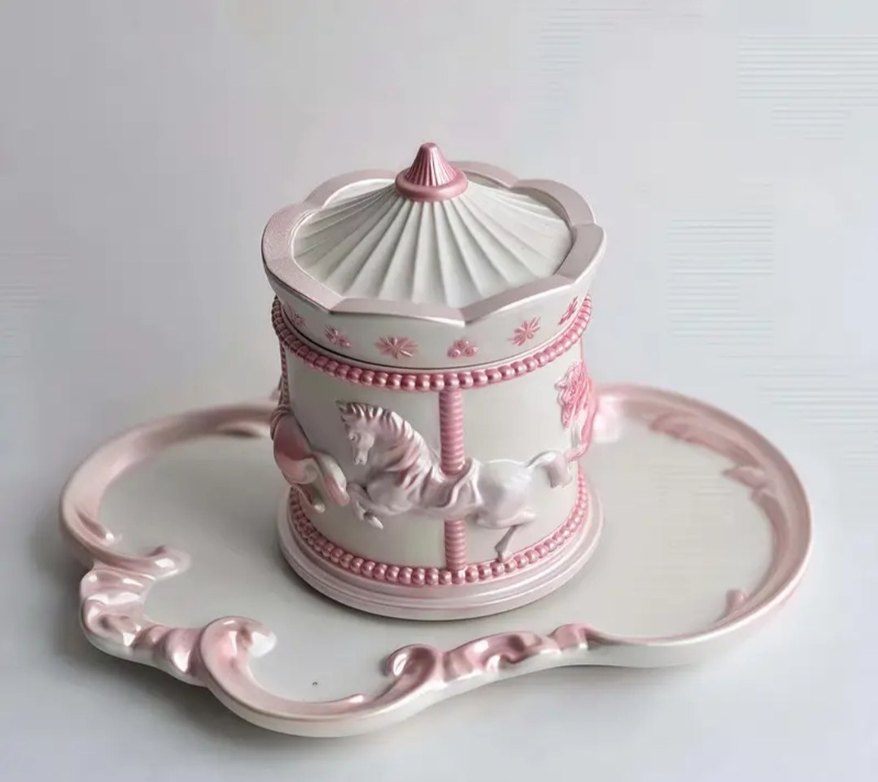 istenilen renkte atlı karınca seti yapılmaktadir dantel tabak ve atlı karınca figürlü mumlu dekoratif kutu. Kenarları kıvrımlı dantel tabak olan uyumlu bir altlıkla birlikte gelir.