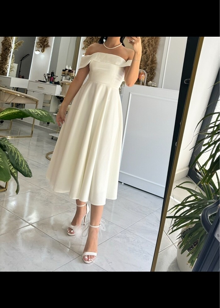 Nişanımda 2 saat giydim çok güzel tok bir kumaşı var asla iç göstermiyor üst kısmında silikon destek olduğu için yaka kısmı düşmedi. Herkes prenses gibi olmuşsun dedi gerçekten öyle hissettiriyor. Atölye No:6 madonna yaka midi boy elbise
