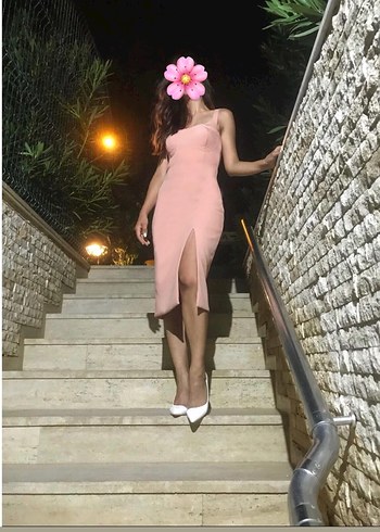 Atölye no6 Pudra renk midi boy Kokteyl Elbisesi