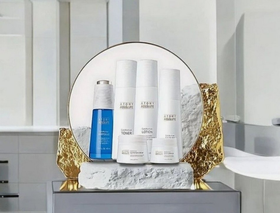 Atomy Absolute cilt bakım seti, tonik, losyon ve ampul içerir. Cildi nemlendirir ve canlandırır.