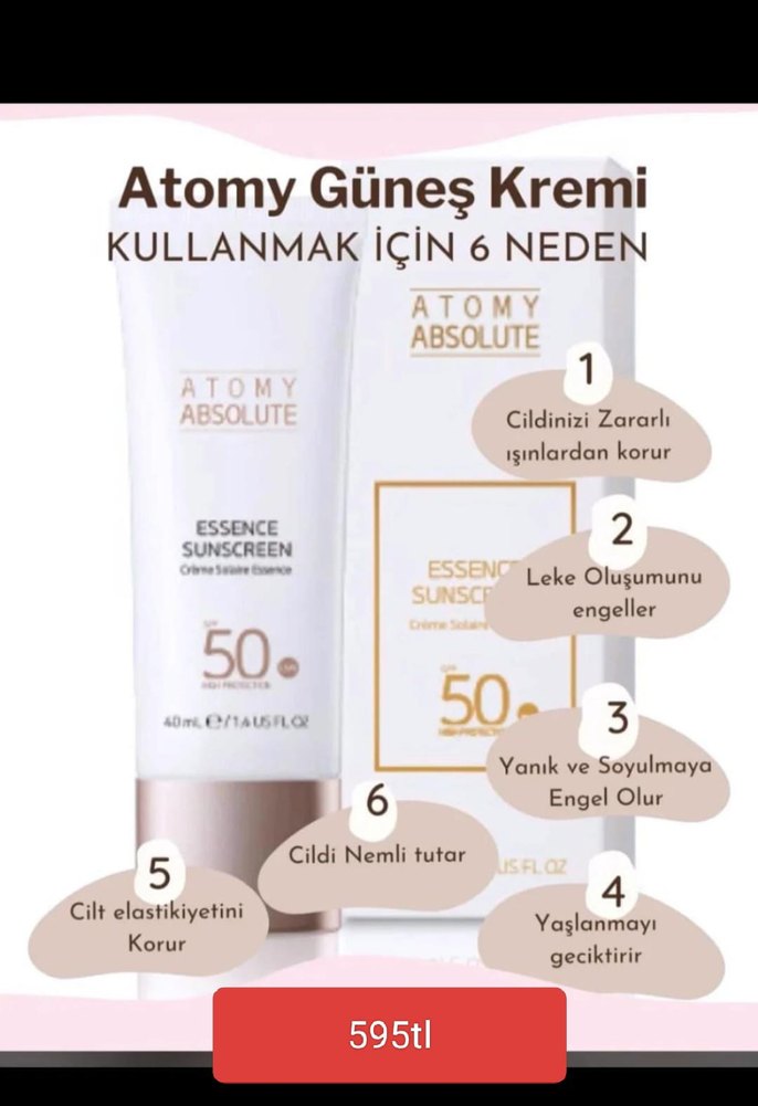 Atomy Absolute Essence Güneş Kremi SPF 50, cildinizi zararlı ışınlardan korur, leke oluşumunu engeller, cildi nemli tutar, yaşlanmayı geciktirir, elastikiyeti korur ve yanık ile soyulmaya engel olur. bir güneş kreminden çok fazlası