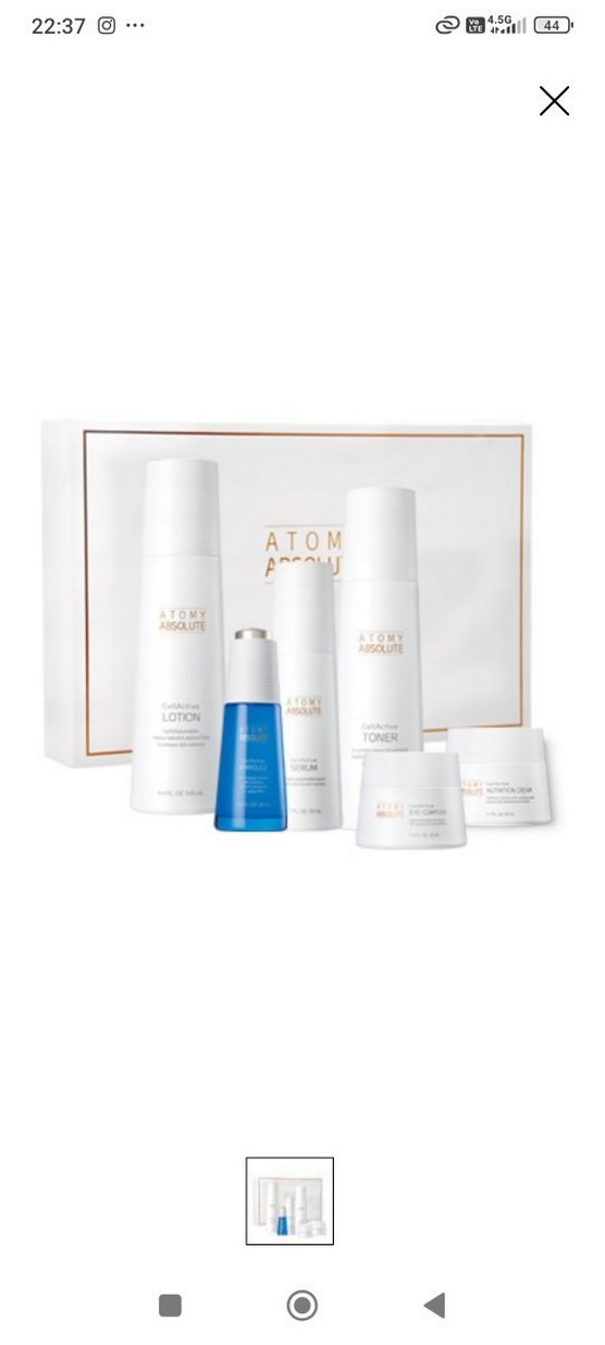 Atomy Absolute cilt bakım seti, losyon, tonik, serum ve kremlerle kapsamlı bakım sunar.