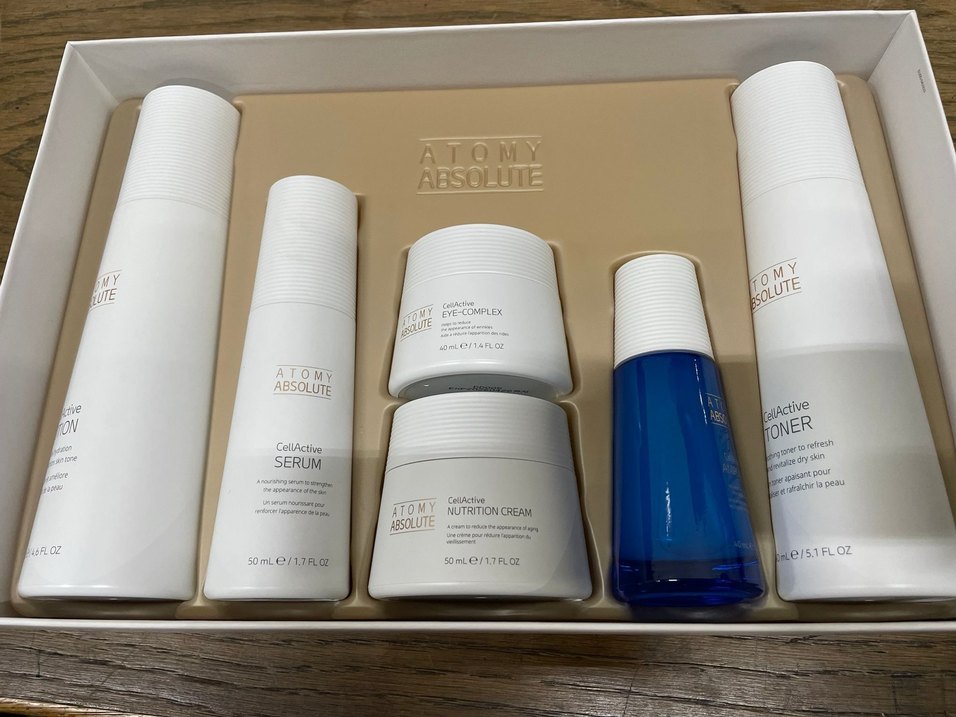 ATOMY (Cilt bakım seti) TOMER AMPOULE SERUM LOTION EYE-COMPLEX NUTRITION CREAM Güney Kore Mucizesi Ödüllü Absolute CellActive Cilt Bakım Seti Tüm cilt tipleri için uygundur. Yaşlanma karşıtı mükemmel formül. AÇIKLAMA: Ürün sıfır orjinal ürünler hiçbir şekilde kullanılmamış Marka hediyesi olduğu için uyguna satmak istedim markanın güncel satış fiyatı yaklaşık 14.000 TL den başlıyor Araştırabilirsiniz