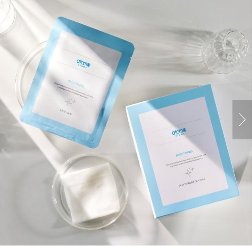 Atomy aydınlatıcı yüz maskesi, cildi tazeleyip aydınlatan yumuşak dokulu bir ürün. Her biri 18g olan 24 maskeden oluşur. ✨