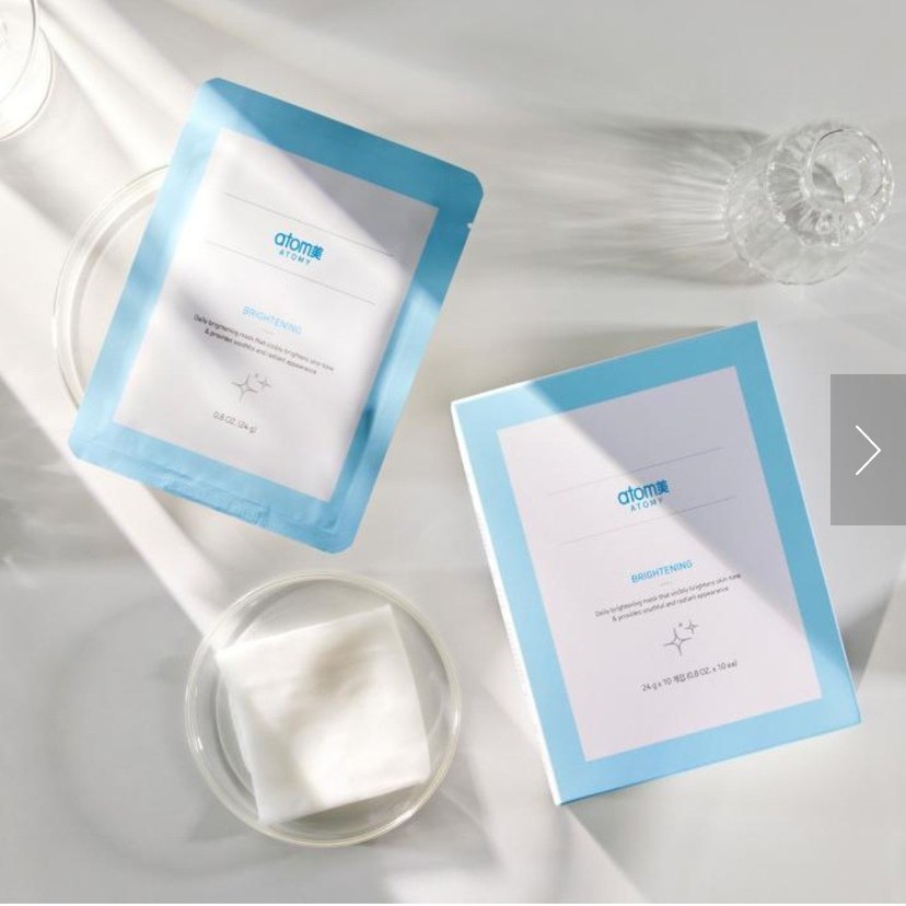 Atomy'nin aydınlatıcı yüz maskesi, cildi nazikçe bakım yaparak parlaklık kazandıran yumuşak pamuk pedlerle birlikte gelir. Pakette 10 adet bulunur.