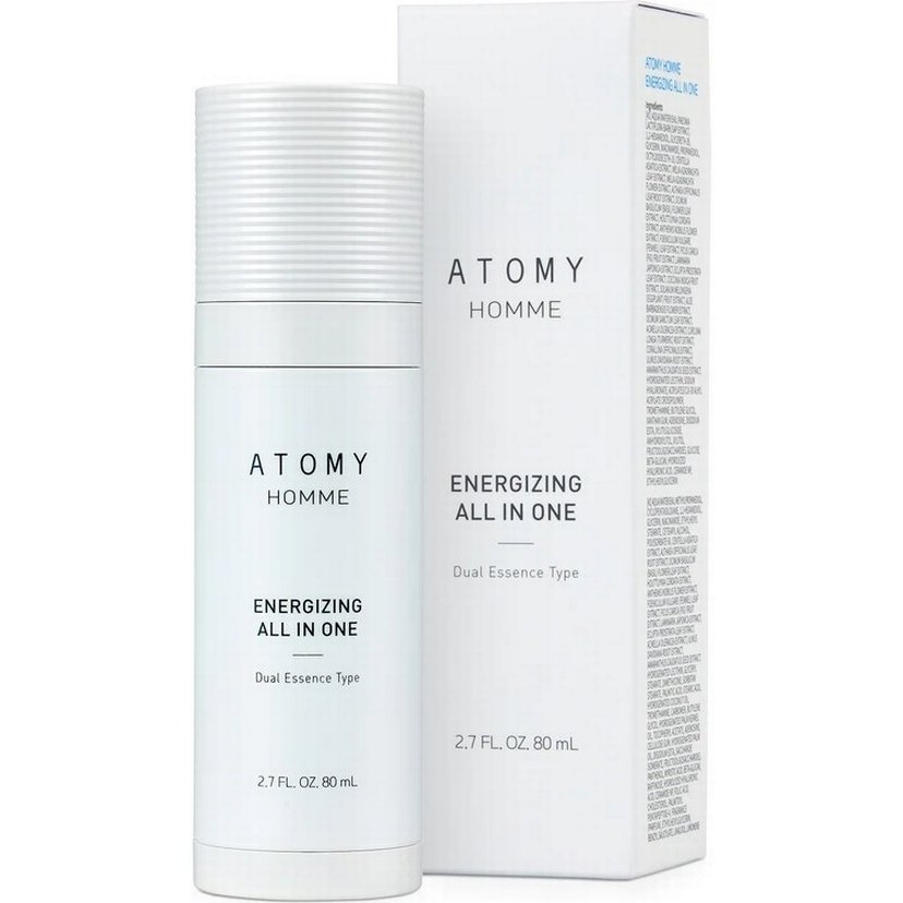 Atomy Homme Enerjize Edici Tüm Cilt Bakımı, erkekler için çift özlü, canlandırıcı etkili 80 ml'lik pratik bir üründür.