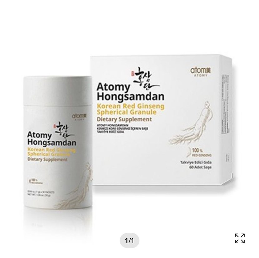 Atomy Hongsamdan, %100 Kore Kırmızı Ginsengi içeren küresel granül formunda bir takviye ürünüdür. Doğal içeriklerle destek sağlar.