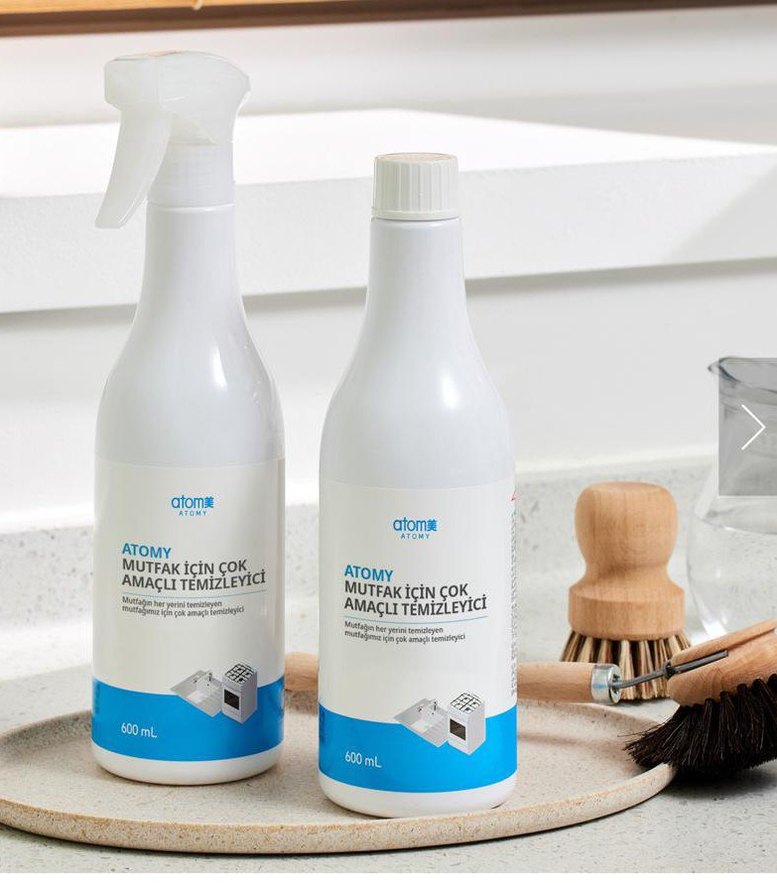 Atomy mutfak için çok amaçlı temizleyici, 600 ml şişelerde mutfak temizliği için uygundur. Sprey ve dökme şişe seçenekleriyle.