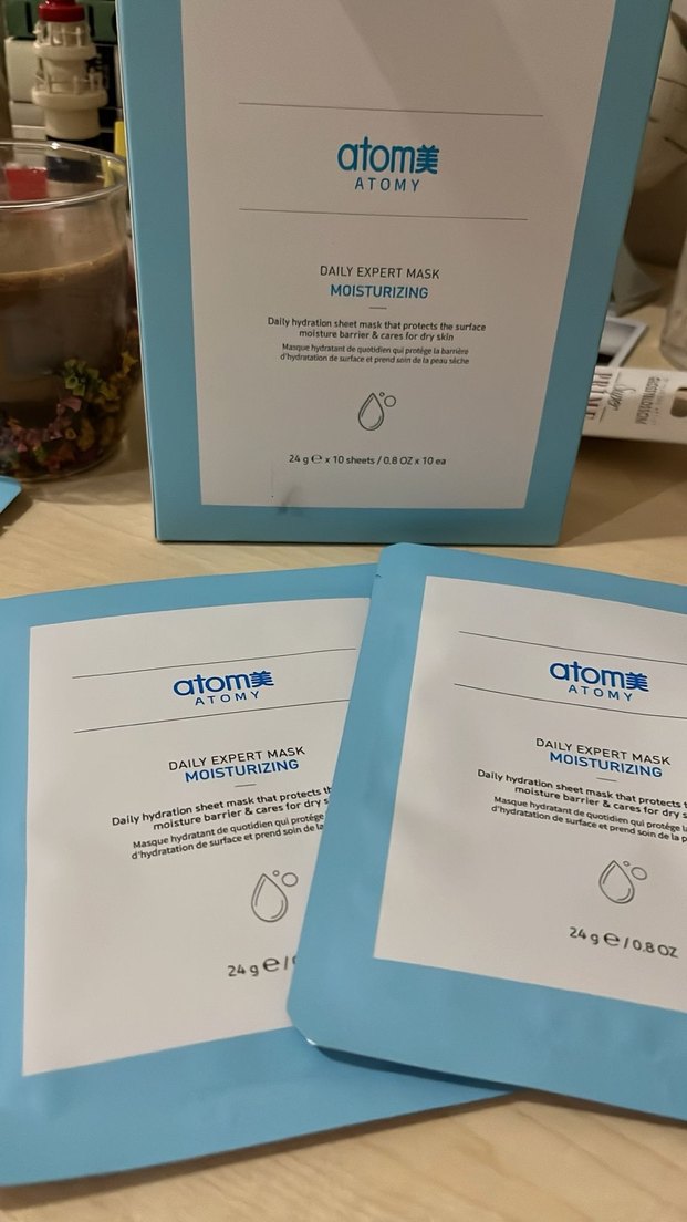 Atomy Günlük Uzman Maske, cildin nem bariyerini koruyarak günlük nem sağlar. Pakette 10 adet nemlendirici yüz maskesi bulunur.