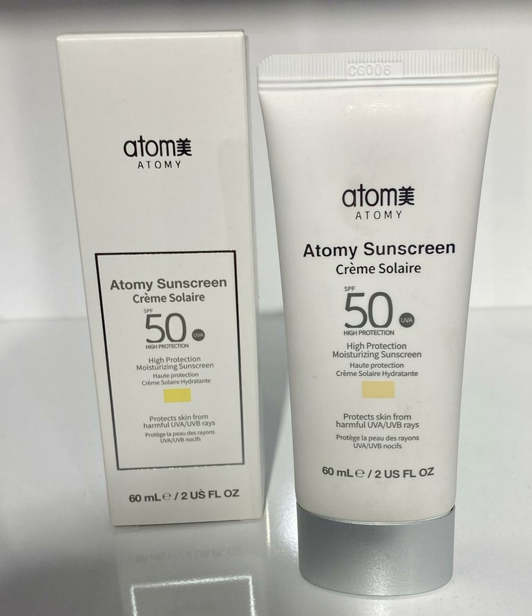 Atomy Güneş Kremi SPF 50 yüksek koruma sağlar, cildi nemlendirir ve zararlı UVA/UVB ışınlarından korur. 60 ml tüpte sunulur. ☀️Beyaz ve bej renkleri mevcuttur.