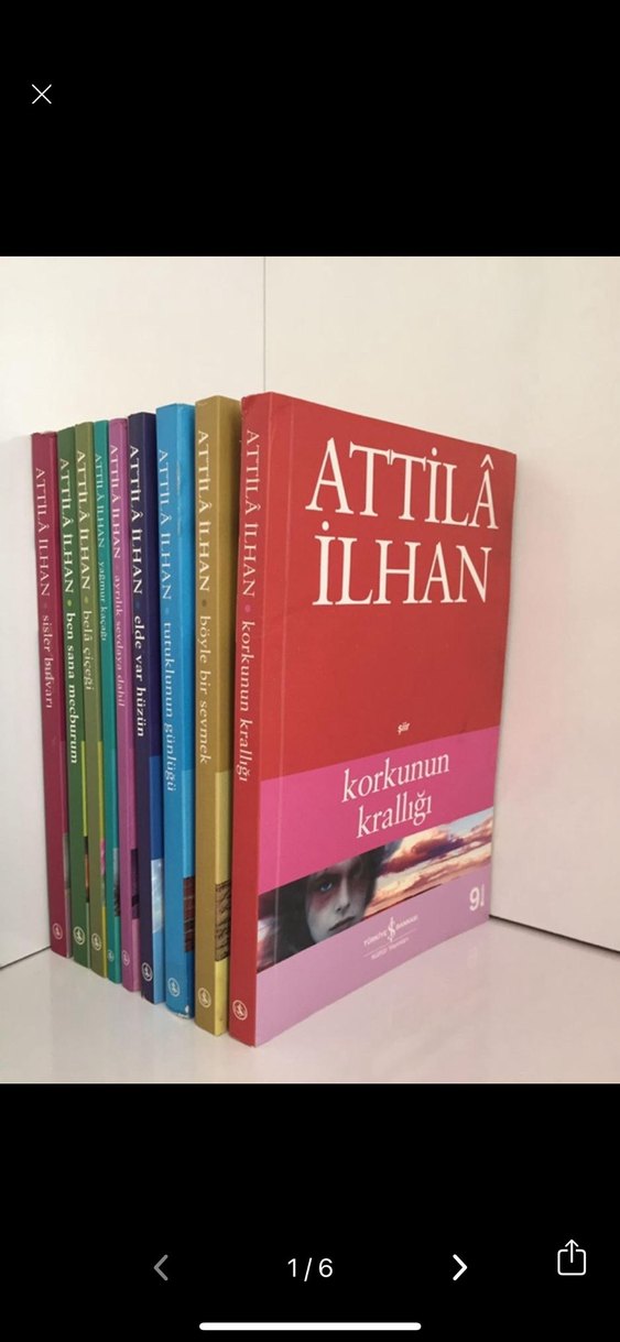 Attila İlhan'ın 'Korkunun Krallığı' dahil roman koleksiyonu. Renkli sırtlarıyla yazarın eserleri bir arada. Kitap sayfalar lekelenmiş fakat hiçbir şekilde yırtık vs yoktur