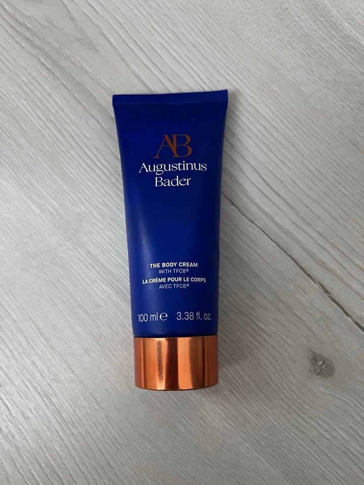Augustinus Bader vücut kremi, 100 ml tüpte, cildi nemlendiren ve besleyen yumuşak formüle sahiptir.