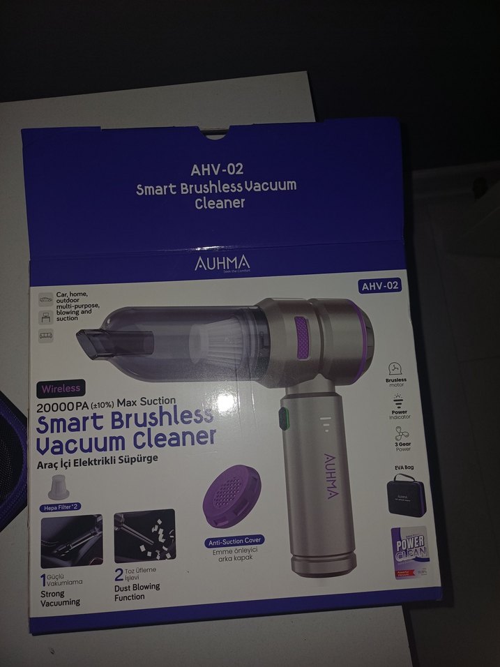 AUHMA AHV-02 kablosuz elektrikli süpürge, akıllı fırçasız motor ve 20000PA maksimum emiş gücü sunar. Toz üfleme ve anti-suction kapak özellikleri bulunur. fiyat 1500