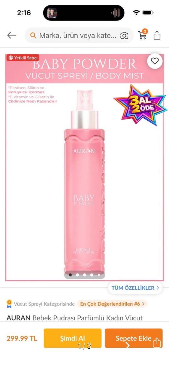 Auran Baby Pudra vücut spreyi, E vitamini ve gliserin ile cildinize nem kazandırır. Paraben, silikon ve koruyucu içermez. ambalajı değişmiş yeni ben 6-7 ay önce almıştım aynı koku aynı ürün