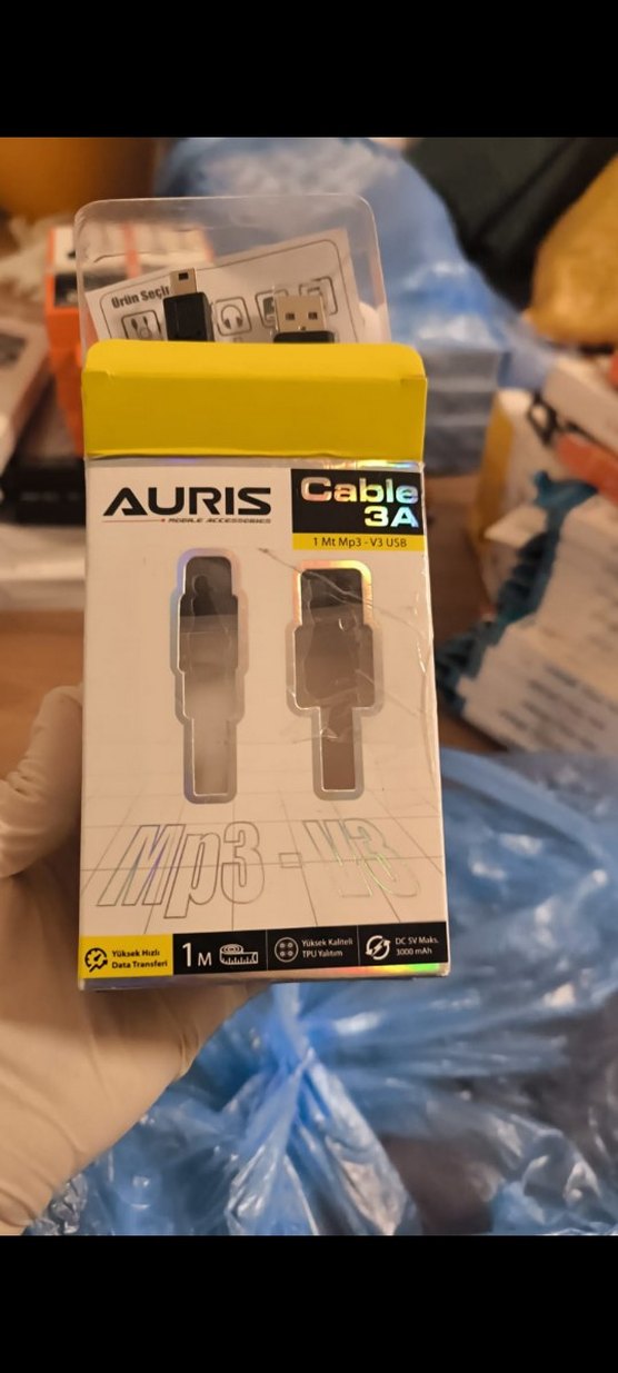 AURIS marka, 1 metre uzunluğunda, 3A akım destekli USB şarj kablosu. Hızlı veri aktarımı ve şarj için uygundur.