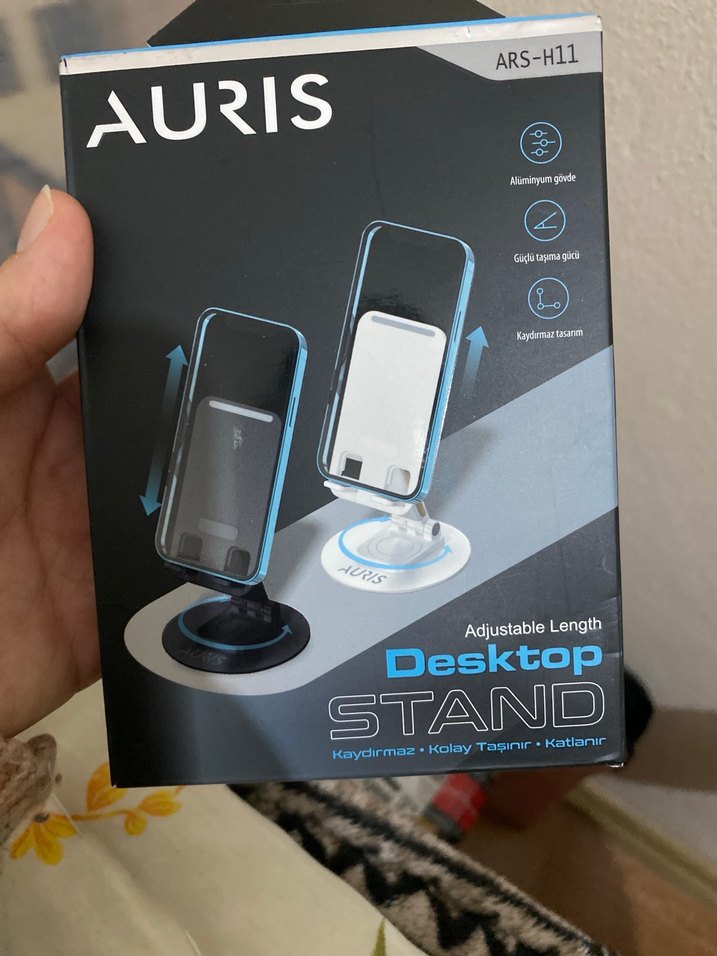 AURIS ARS-H11 ayarlanabilir masaüstü telefon tutucu, kaydırmaz tasarımlı ve güçlü alüminyum gövdelidir. Kolay taşınabilir ve katlanabilir yapıya sahiptir.