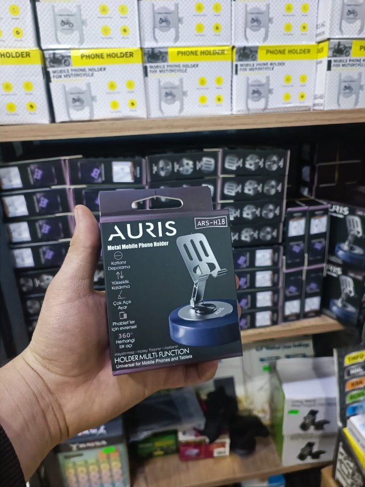 Auris ARS-H18 metal telefon tutucu, koyu mor renkte, 360° dönebilen çok fonksiyonlu tasarıma sahiptir. Güçlü tutuş sağlar ve telefon ile tabletler için uygundur.
