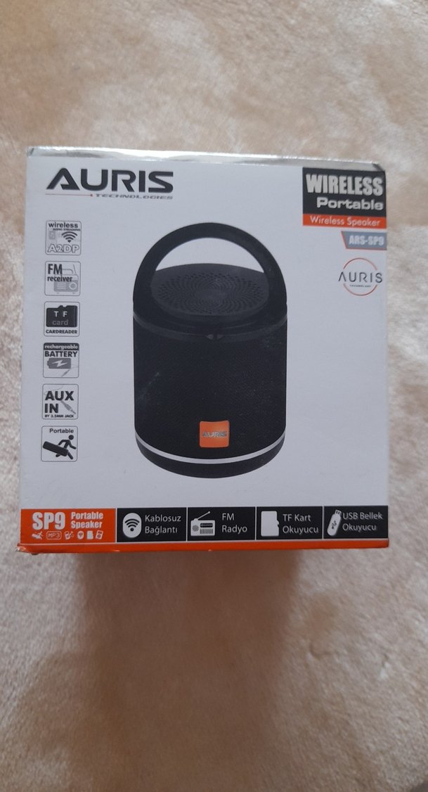 diğer ürünlerede bakabilirsiniz. ürün sıfır kutusunda Auris SP9, kablosuz bağlantı, FM radyo, AUX girişi, TF kart ve USB desteği sunan siyah taşınabilir Bluetooth hoparlördür. Taşınabilir sapı ve şarjlı bataryası vardır.