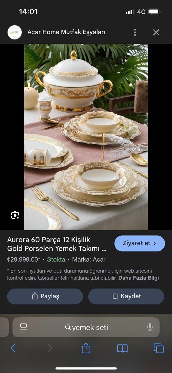 Aurora, 12 kişilik 60 parçadan oluşan, altın detaylı porselen yemek takımıdır. Modern klasik tarzda, desensiz ve şık altın süslemelere sahiptir. ️