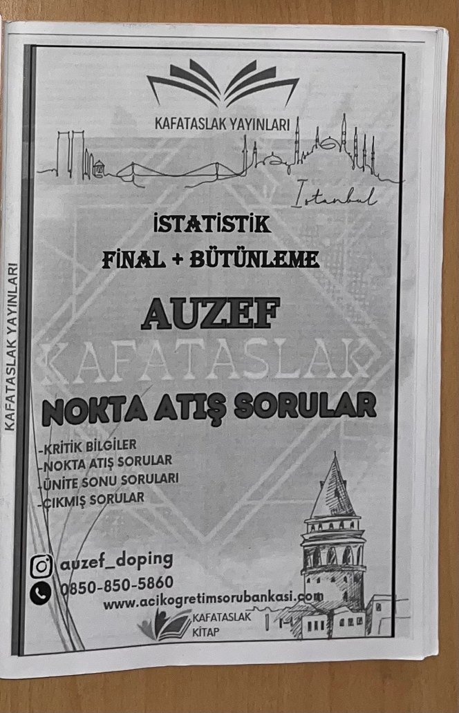 AUZEF istatistik vize ve final -bütünleme sınavları için kritik bilgiler, nokta atış sorular, ünite sonu soruları ve çıkmış soruları içerir. Kafa taslak yayınlarına ait.