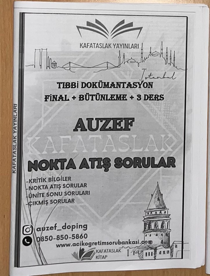 AUZEF Tıbbi dokümantasyon Vize ve final, (bütünleme ve 3 ders olarak )kapsayan kafa taslak yayınları soru bankasıdır. Kritik bilgiler, nokta atış sorular, ünite sonu ve çıkmış sorular içerir.