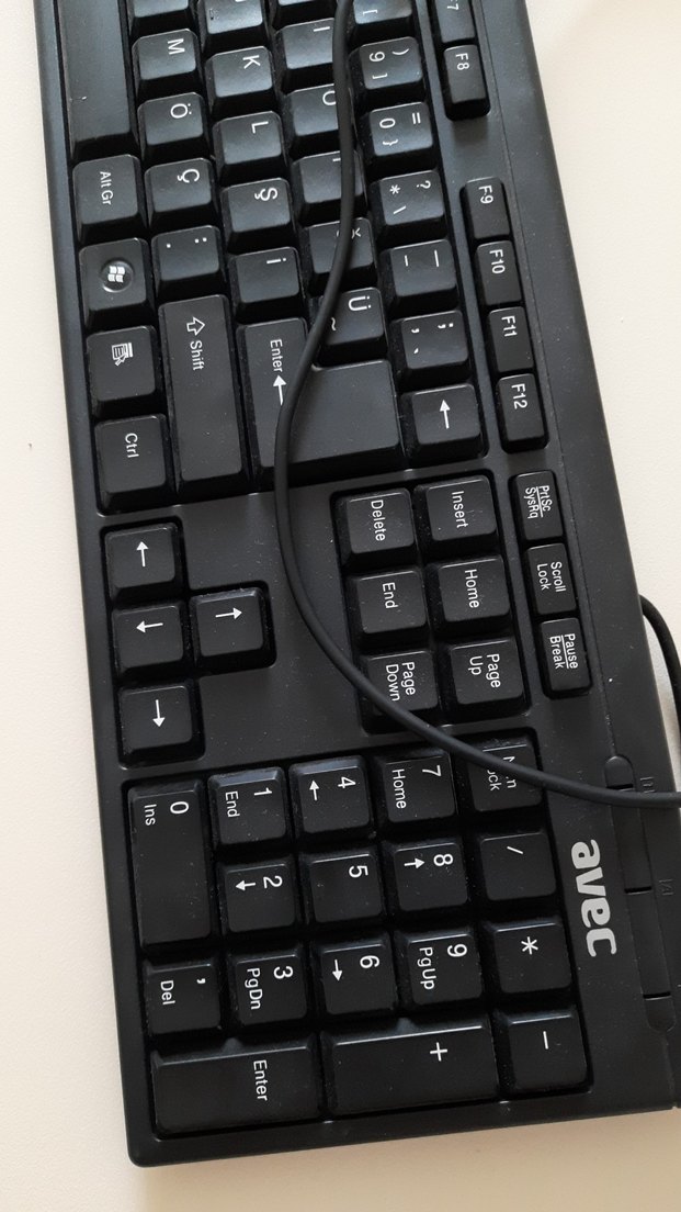 Avec marka siyah kablolu klavye, tam düzen ve sayısal tuş takımı ile verimli yazma sağlar. ⌨️