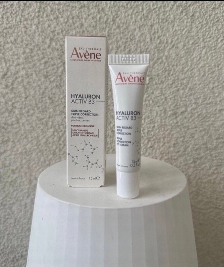 Avene Hyaluron Activ B3 göz kremi, hyaluronik asit ve B3 vitamini ile göz çevresini nemlendirir ve düzeltir. 15 ml tüpte sunulur.