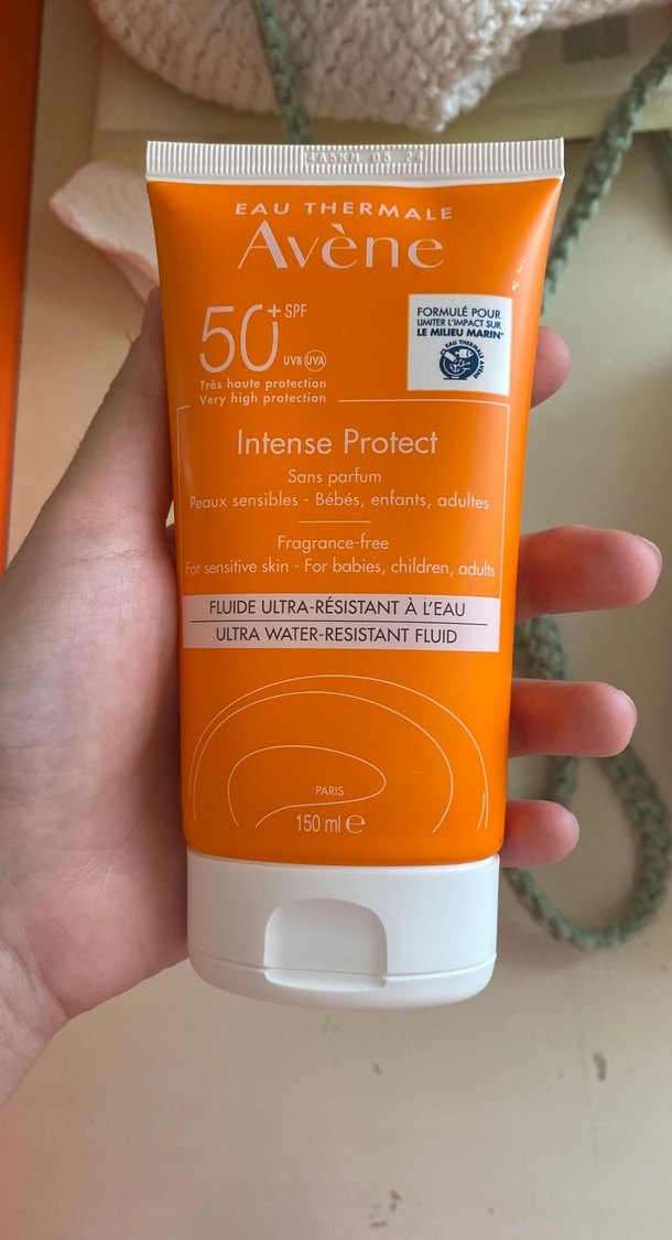 Avene Intense Protect SPF 50+, parfümsüz ve ultra suya dayanıklı formüle sahip, bebekler, çocuklar ve yetişkinler için hassas ciltlere uygun güneş koruyucu sıvıdır. Çok yüksek koruma sağlar. ☀️ Cildim yağlı olduğu için bana uymadı, yüz ve vücut için kullanılabilir büyük boy, daha yeni aldım 2 defa kullandım