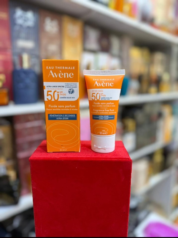Avène SPF 50 parfümsüz sıvı, hassas ciltler için ultra hafif nemlendirme ve geniş spektrumlu güneş koruması sunar. Hızlı emilir ve parfüm içermez.