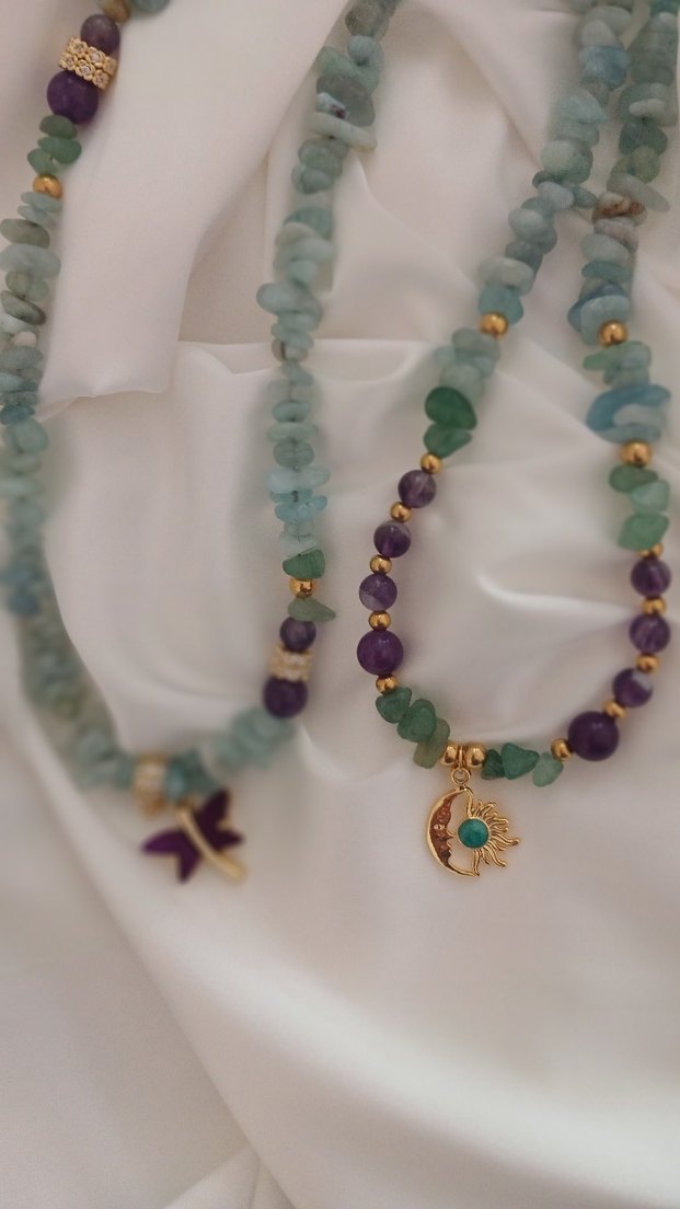ürünümüz kırıktaş aventurin ve ametist detaylı tasarım kolyemiz aparatları çeliktir elişçiligi AAAKALİTE