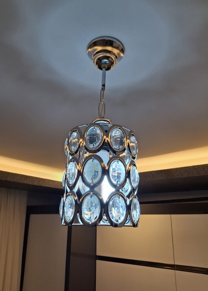 Kristal taşlı krom avize