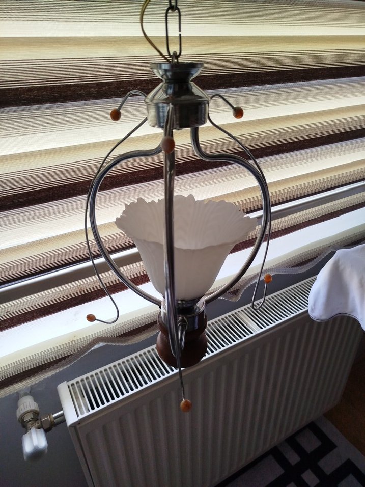 lale desenli abajura sahip metal çerçeveli avize yumuşacık ve sıcak aydınlatma sağlar defosu yoktur her odaya uyum sağlar